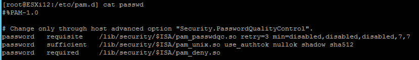 • Password complexity: Esxi use ESXi uses the Linux PAM module pam_passwdqc for password management and control.vSphere 6.0, your user password must meet the following requirements,